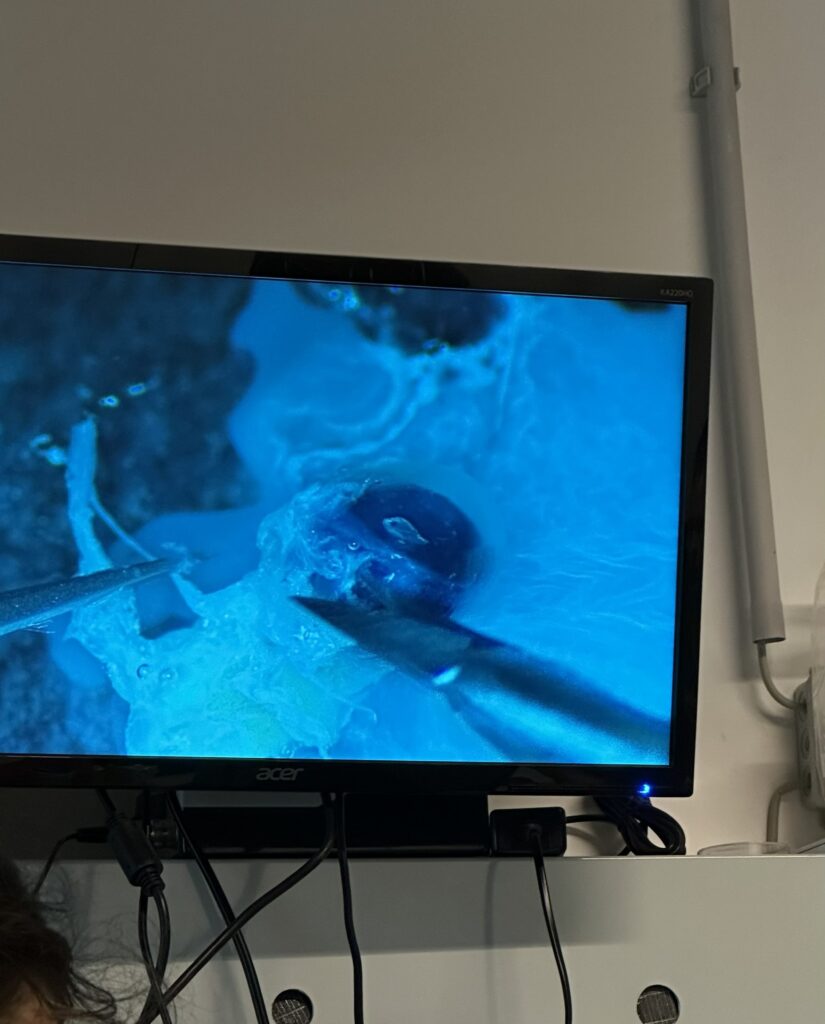 Die Sektion eines Mäuseauges unter dem Mikroskop