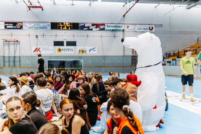 …. Rupis Rinderbande, die Wieselburger, Al Hal Jon, Die Sekte, win2day.com, Passt scho`- das waren die Teams des diesjährigen Oberstufenballsportturniers, die sich im Dodgeball, Fetzball und Fußball versuchten und dabei außergewöhnlich gute Figur machten, denn kostümiert zu spielen, ist oft gar nicht so einfach!