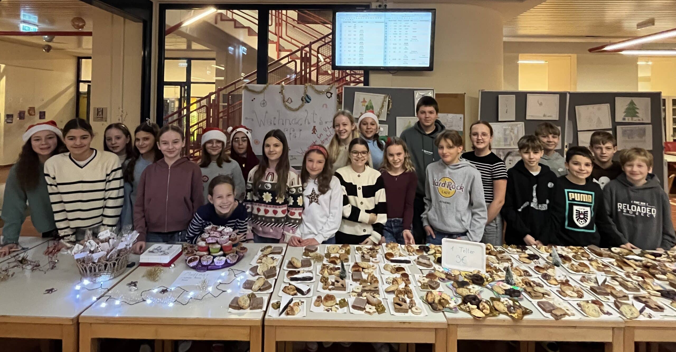 Mit großem Engagement organisierte die Klasse 2a des BRG Krems Ringstraße ein weihnachtliches Buffet für einen guten Zweck. Gemeinsam mit der tatkräftigen Unterstützung ihrer Familien sowie ihrer Klassenvorständin Mag. Julia Lohninger bereiteten die Schülerinnen und Schüler zahlreiche Köstlichkeiten wie Kekse, Kuchen, gebrannte Mandeln und Kinderpunsch vor.
